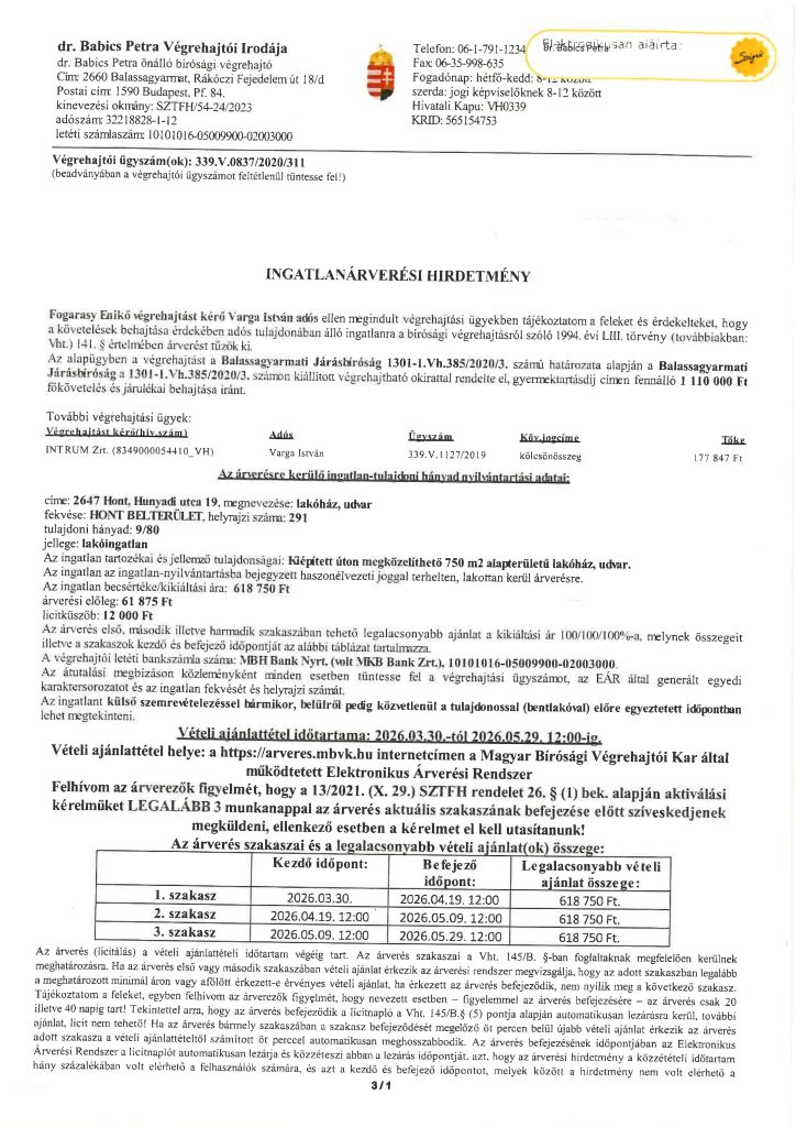 A Nógrád Vármegyei Kormányhivatal Balassagyarmati Járási Hivatal Élelmiszerlánc-biztonsági és Állategészségügyi Osztálya (továbbiakban: Hivatal) elsőfokú élelmiszerlánc-felügyeleti jogkörében meghozta az alábbi